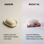 ROCKY M. ist für gängige feste Seifen konzipiert.