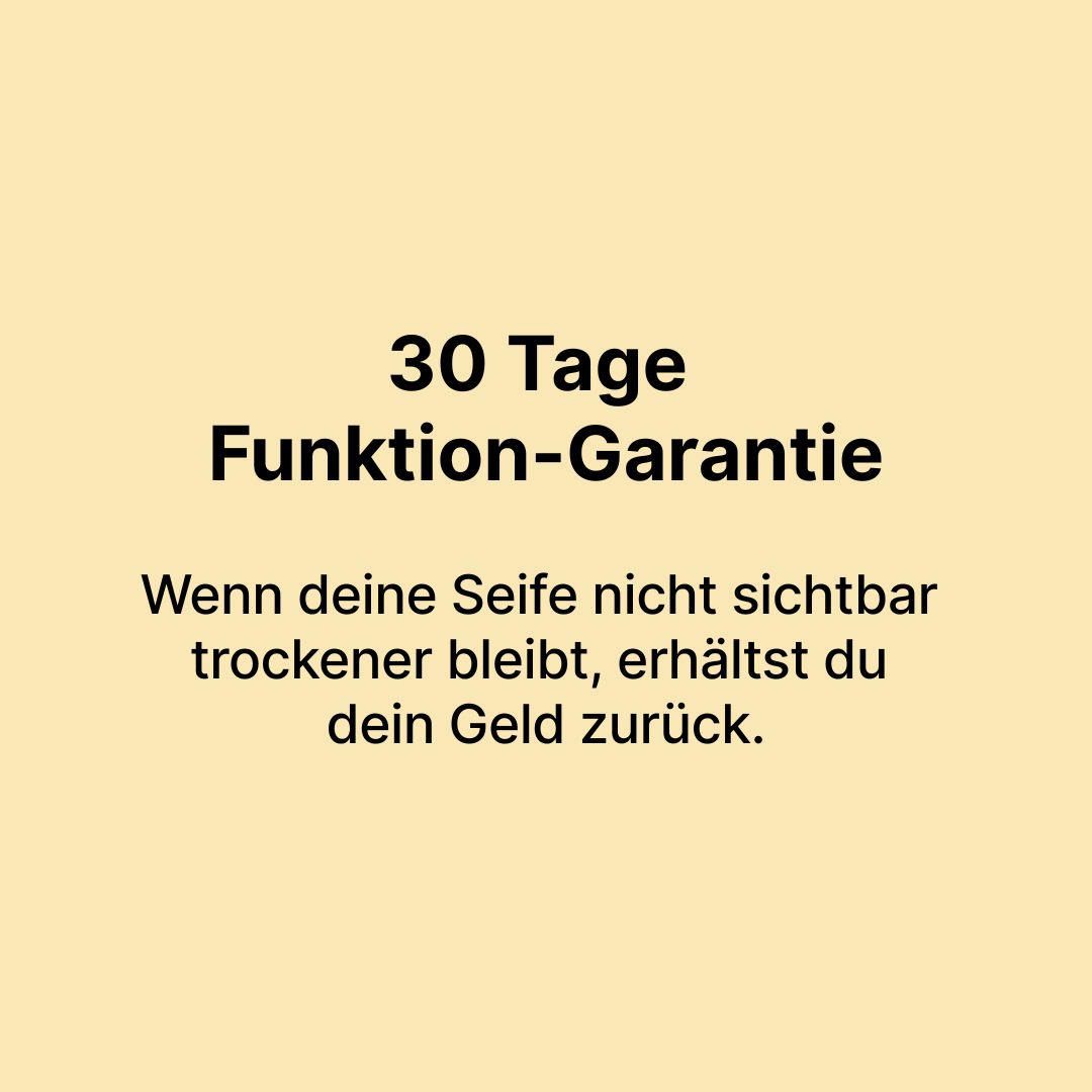 Wenn deine Seife nicht sichtbar trockener bleibt, erhältst du dein Geld zurück.