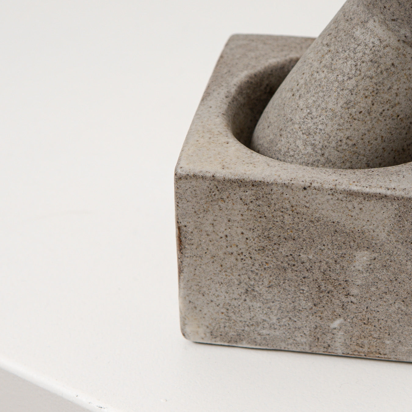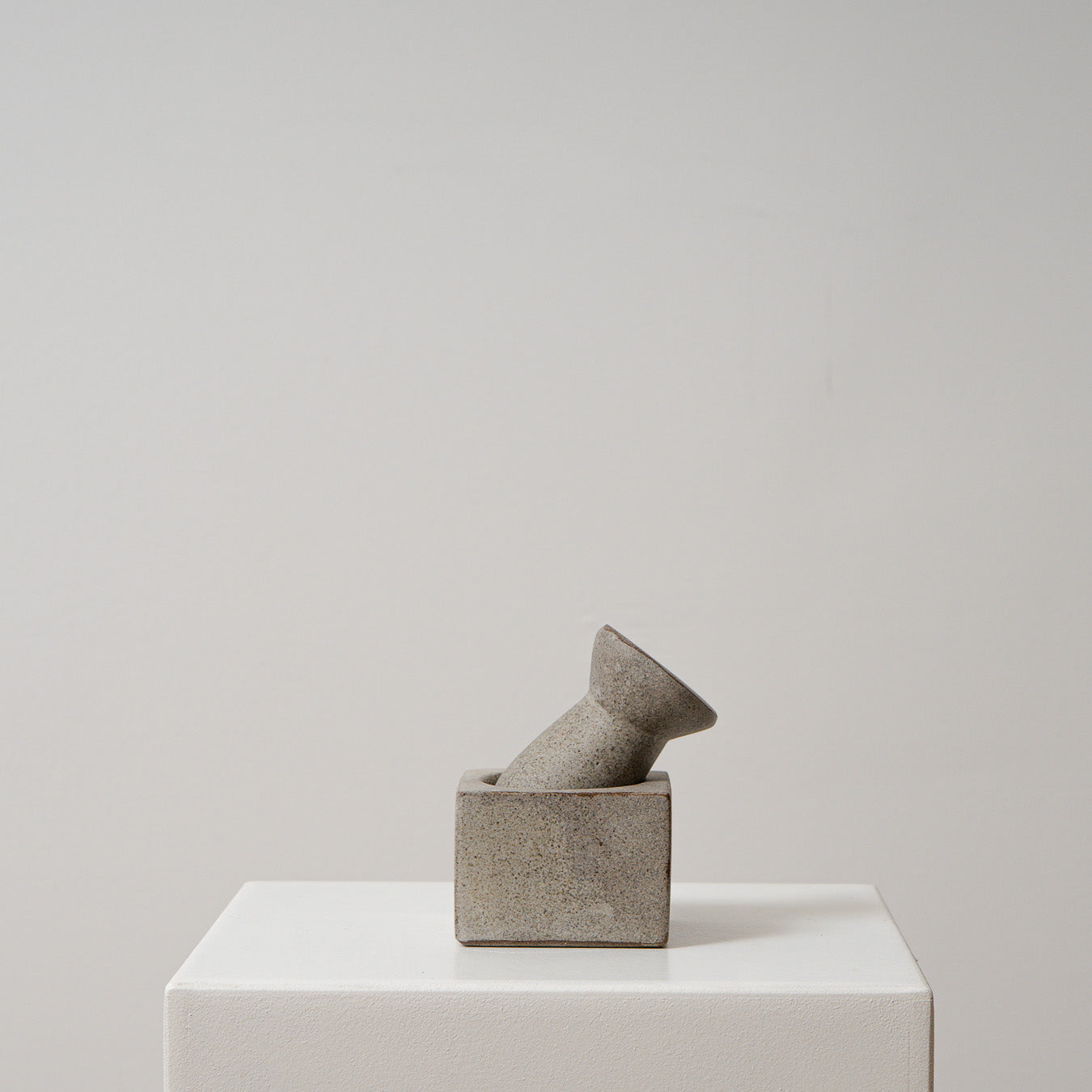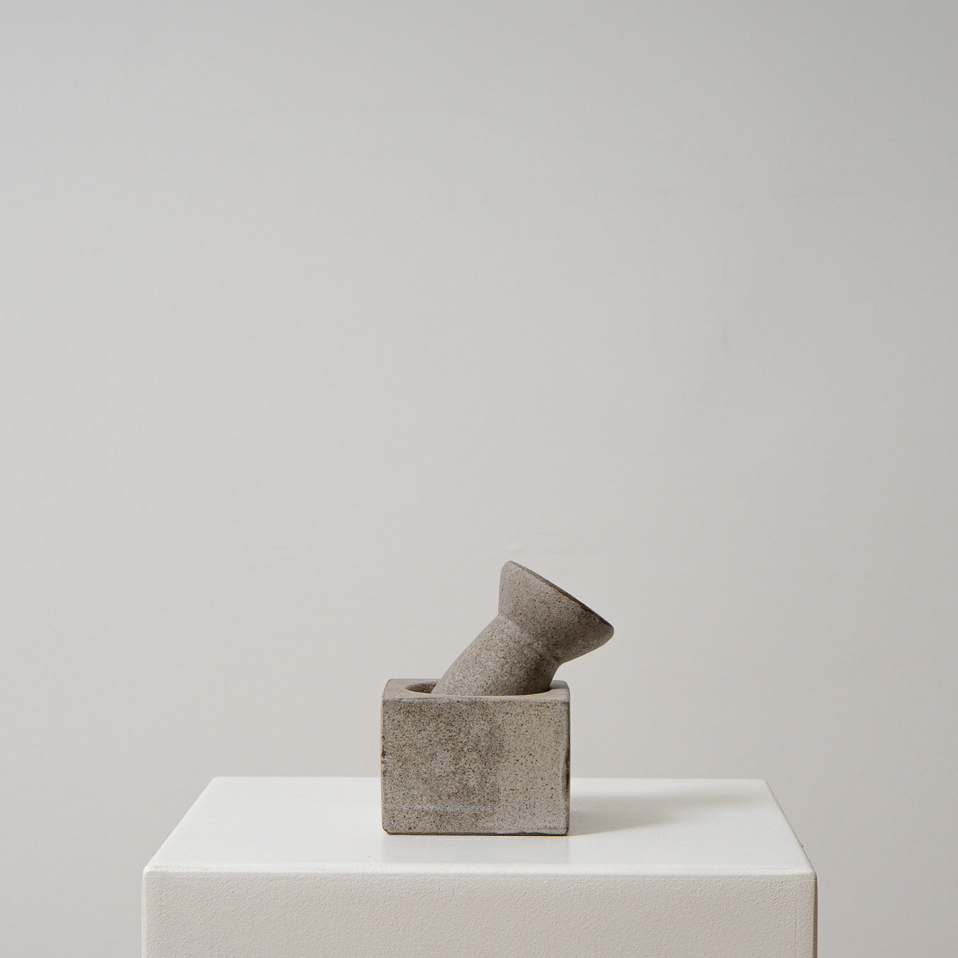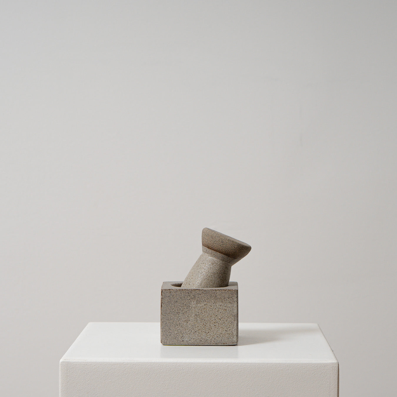 Ein schwerer Mörser, mit einer Schale, die nicht viel größer ist als der Stößel. Der Stößel ist oben flach und abgerundet und kann dadurch mit der Handfläche und ein paar Drehungen einfach bedient werden. Ohne viel Kraftaufwand lassen sich sehr schnell trockene Gewürze, wie Pfeffer, Senfsamen und Chili zermahlen. Inspiriert von der Küche Ottolenghis, ein Stück dass man sehr schnell schon allein wegen der Düfte nicht mehr in der Küche missen möchte.