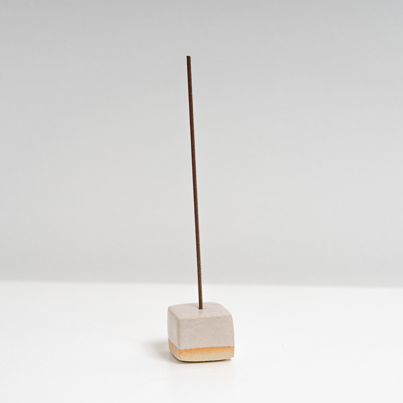 Ein kleiner geometrischer Keramikwürfel, der das Räucherstäbchen sicher hält und sich mit seiner ruhigen, reduzierten Form mühelos in jede Umgebung einfügt.